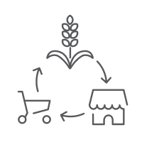 業態・店舗が生産者と直接つながることで生産者の所得向上。従業員の働きがいや知識向上。消費者への適正価格での供給。また、店舗が産地と深くつながることで、地域活性化の好循環を生み出します。