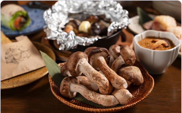 従来の火鍋とはまた違う「日式きのこ火鍋」。味わい深い昆布出汁に、それぞれ個性のあるきのこを常時10〜12種類盛り込んでご提供します。タレ場には、約20種類の薬味をご用意し、自分好みにスープやタレをアレンジできます。好きなものを好きなように味わう。新しい火鍋の形をお楽しみください。