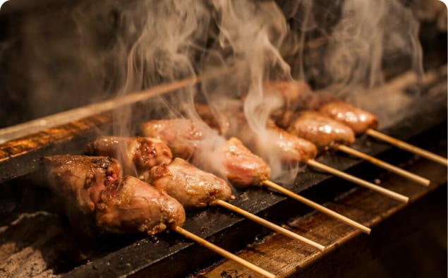 駅から少し歩いた住宅街に佇む、こだわりの焼き鳥とお酒が楽しめる、炭火焼鳥専門店。宮崎県産の「みやざき地頭鶏」や鹿児島県産の「黒さつま鶏」など希少な地鶏や静岡県産の「信玄鶏」や福島県産「伊達鶏」などを部位ごとに厳選して使用し、それぞれの特徴を活かして、美味しさを引き出す調理方法で丁寧に仕上げてあります。