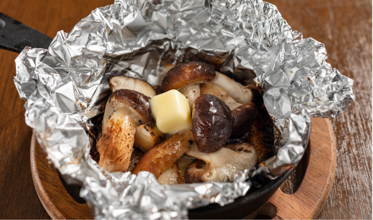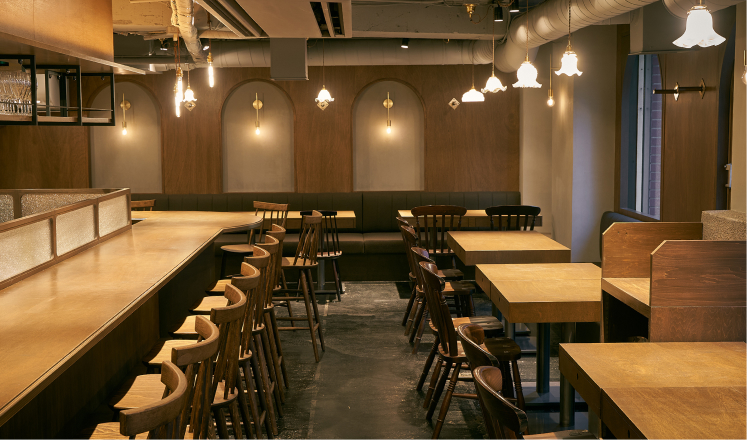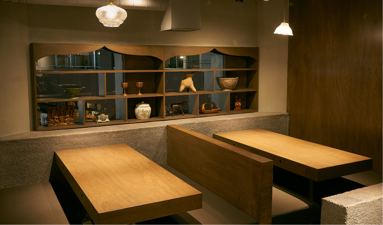 繁華街から一本入った裏路地にある薄暗いビルの2階にある扉を開くと広がるどこか ノスタルジックな店内。珍しいきのこや、見たことのないきのこを身近に食べられ、おしゃれで落ち着く空間が女性を中心にロコミで広がり、今では美容やファッションに意識の高い女性を中心に連日、盛況いただける店舗となっています。