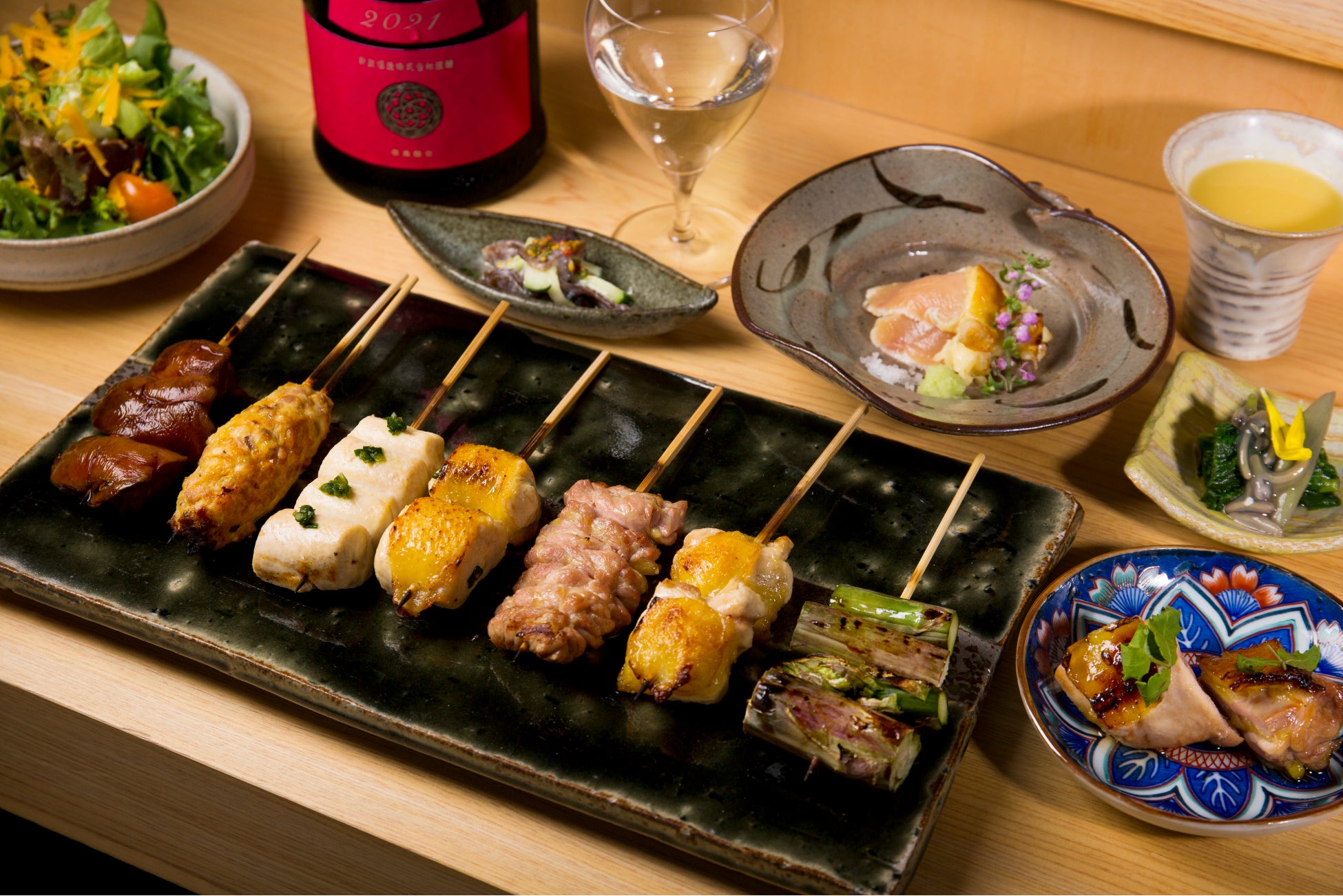 コース:おまかせ ストップ制6,800円(税込) 部位によって味わいの異なるその特徴をじっくり余さず楽しんでいただきたいという想いから、おまかせコースのスタイルで、焼き師にご提供を任せていただきます。 「ストップ」のお声が掛かるまで、秋田の新鮮野菜を含めた様々な串をお出しします。黒さつま鶏のさっぱりした脂と熟成によっていっそう引き出された旨味深い焼鳥を、心ゆくまでご堪能ください。 |