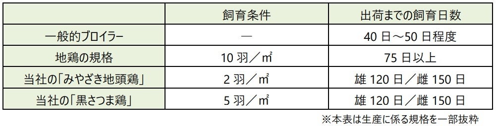 食鳥には、ブロイラー・銘柄鶏(こだわり育成のブロイラー)・地鶏の区分があり、地鶏は日本農林規格により生産方法の基準が設けられています。当社の地鶏は、その基準をさらに上回る条件で育成していることに加え、各々の農家がおいしさを追求し研究、研鑽。プライドとこだわりを持って育成しています。