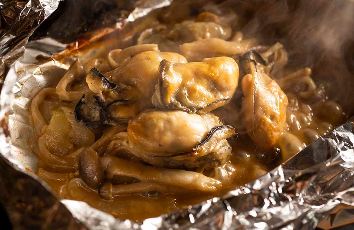 冬の塚田農場の風物詩と言える商品になりつつあるこのホイル焼きは、瀬戸内海産の真牡蠣を特製のイカわたソースで蒸し焼きにする、こだわりの一品です。残ったソースにはぜひ白ごはんを混ぜて、最後までお楽しみください。