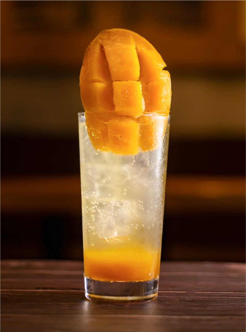 口当たりはとろっとなめらかで甘みが強く、赤い果皮のケント種(ペルー産)のマンゴーを大胆にレイアウトした、夏を感じるサワーです。