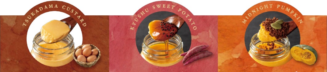 こだわり卵の深いコク味をベースに、さつまいも「紅はるか」(鹿児島県産)、かぼちゃ「くりゆたか」(鹿児島県産)の豊かな風味と味わいを楽しむためのプリンセットになっています。